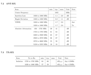 - 通带范围:1735MHz-1785MHz (1830MHz-1880MHz),带宽50MHz