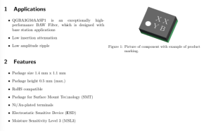 滤波器 N77-200MHz 3400~3600MHz (200MHz) BAW 1411封装 [QGBA3G50AASP1]